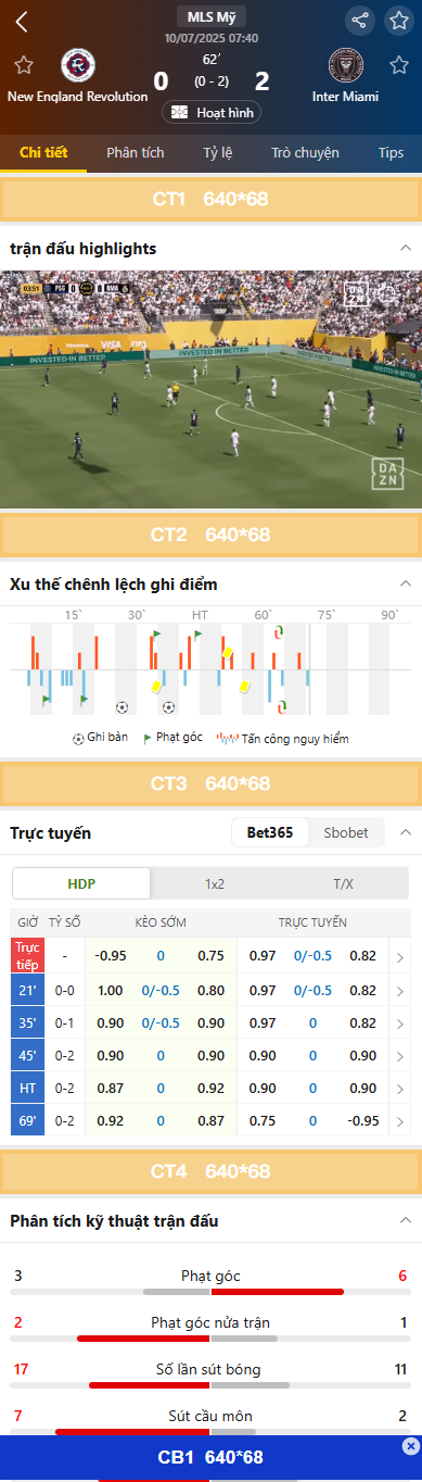 Các vị trí trên trang Chi tiết bóng đá